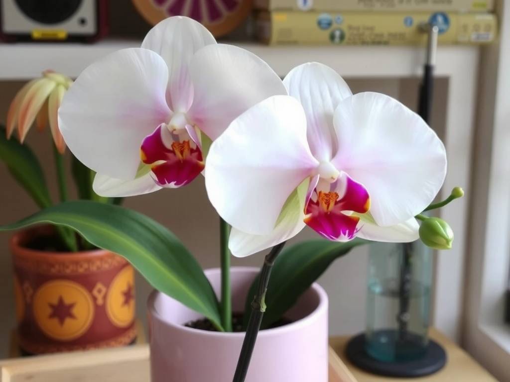Phalaenopsis orchids thrive in 50-70% humidity, which is higher than most indoor environments. You can boost humidity by placing the pot on a pebble tray filled with water (ensure the pot sits above the waterline) or grouping it with other plants. A room humidifier is the most effective solution, especially in dry climates or during winter heating.