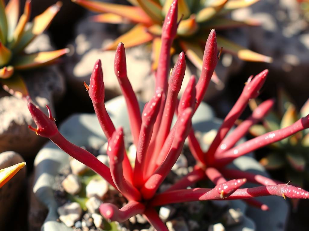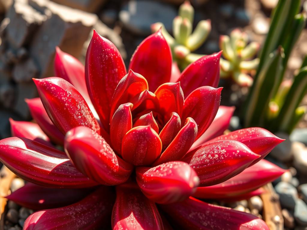 Intense, direct sunlight is the most critical factor for triggering red foliage. While the plant survives in partial shade, it truly thrives and colors up in full sun.