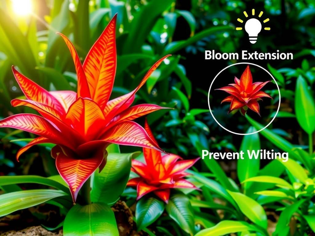 Watering practices directly impact bloom turgidity and prevent wilting. Bromeliads like Vriesea absorb moisture primarily through their central "tank" or cup and secondarily through their roots.