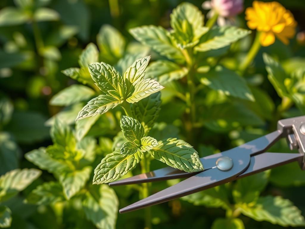 How much mint can I harvest at once without harming the plant? You can safely harvest up to one-third of the plant's total volume at any time, using the same method as pinching: cut stems just above a leaf node. This method simultaneously harvests and promotes new branching. Never strip all the leaves from a stem, as this can kill it.